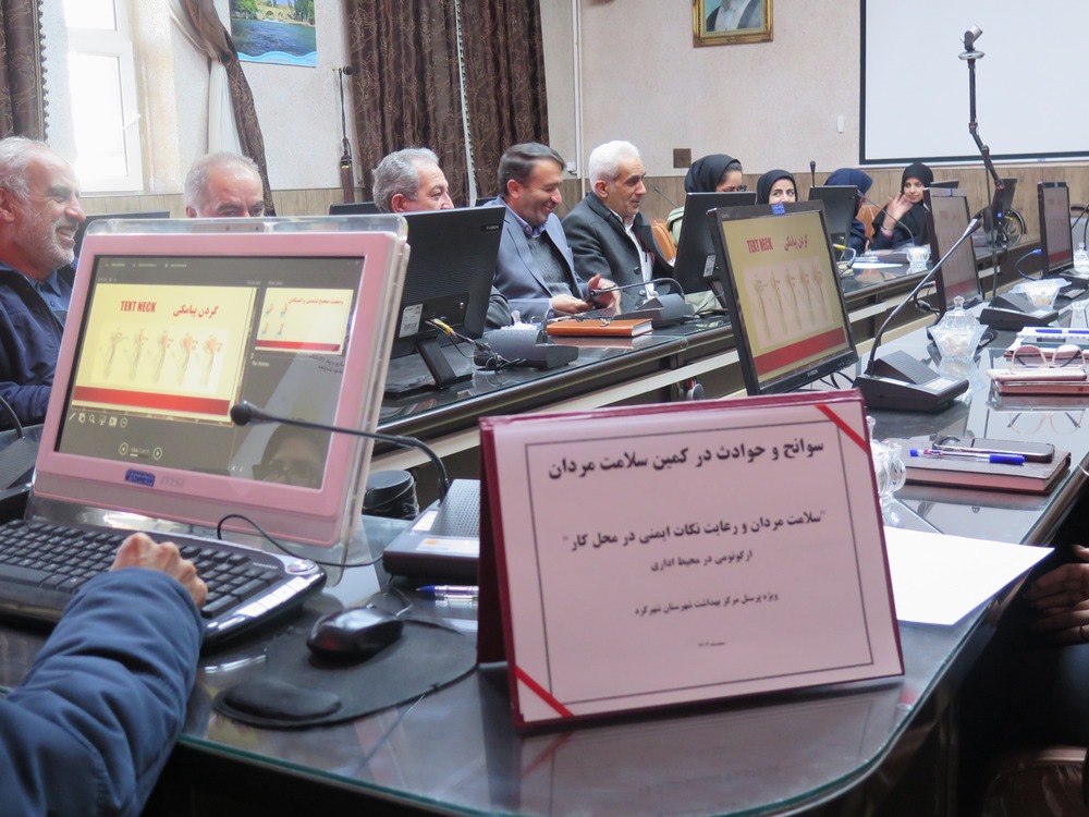 این جلسه با حضور ریاست محترم و کارکنان گرامی مرکز بهداشت شهرستان شهرکرد برگزار شد. در ابتدای این برنامه، سرکار خانم دکتر جوادی ریاست محترم مرکز ضمن تبریک فرا رسیدن هفته سلامت مردان به حاضران، به‌ویژه آقایان، بر اهمیت توجه به سلامت شغلی و پیشگیری از آسیب‌های اسکلتی ـ عضلانی تأکید نمودند.در ادامه، جناب آقای مهندس رجبی، کارشناس محترم واحد بهداشت حرفه ای، به ارائه مطالب آموزشی و کاربردی در زمینه اصول صحیح ارگونومی در محیط اداری پرداختند.